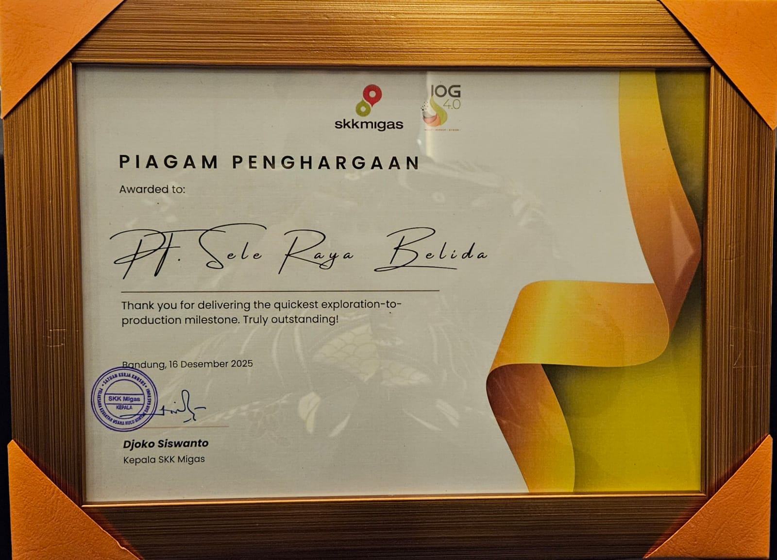 We won the award through Sele Raya Merangin Dua as the operator of the Merangin II Block for successfully implementing the exploration commitment work program and meeting the conditions required in the PSC.