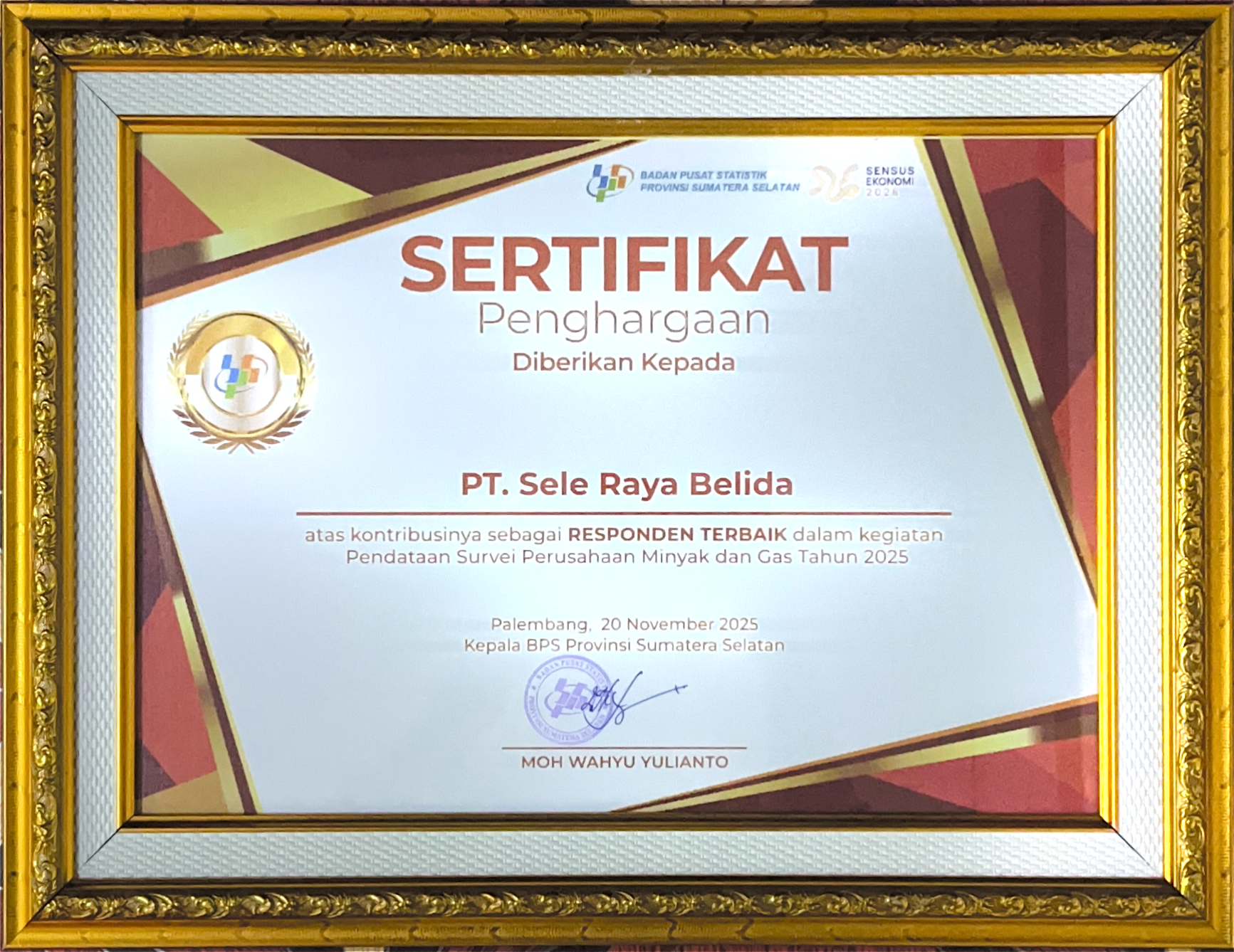 We received acknowledgment through Sele Raya Belida for its contribution as the BEST RESPONDENT in the 2025 oil and gas company survey data collection activity.
